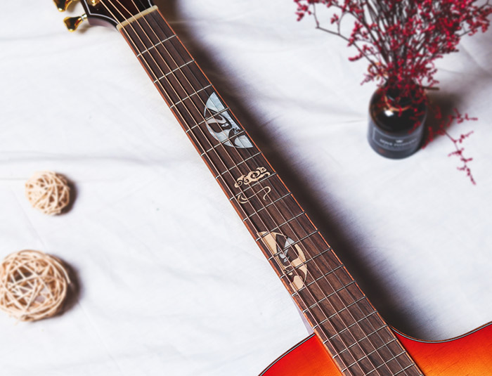 脸谱系列,指板独特图案,设计理念融合中国京剧元素,京剧艺术被称之为 “国粹”,传承中国传统文化。北美西提卡云杉和玫瑰木的组合,相互弥补,共振出色音性饱满,适合节奏感强的曲风演奏。