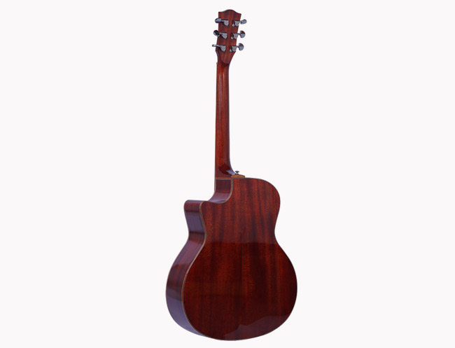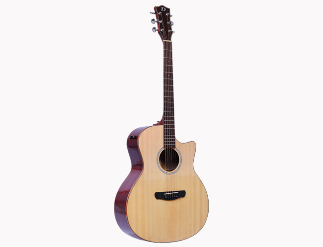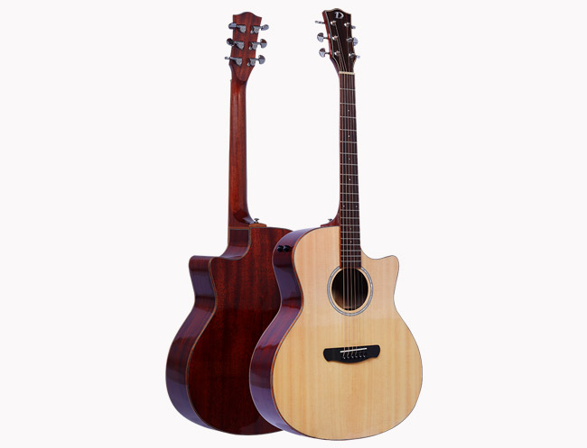 云杉桃花芯,经典的搭配,手工高清高光喷漆,漆面通透、油漆细节足以体现对品质苟刻外观漂亮。亮光漆的漆面对于吉他本身能起到一种很好的保护作用,因为它可以很大程度的隔离木材与外界的接触,包括灰尘,湿度等等因素。
