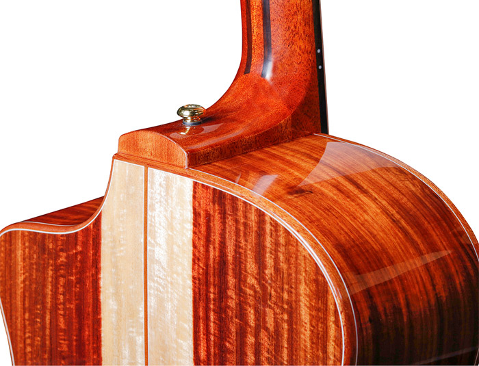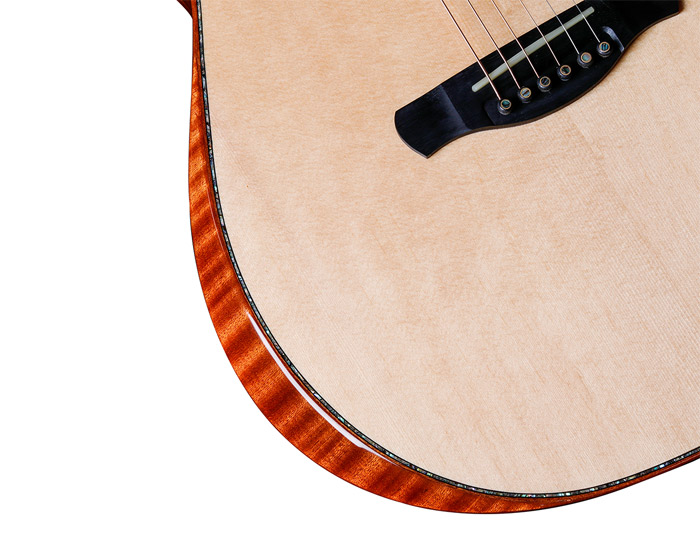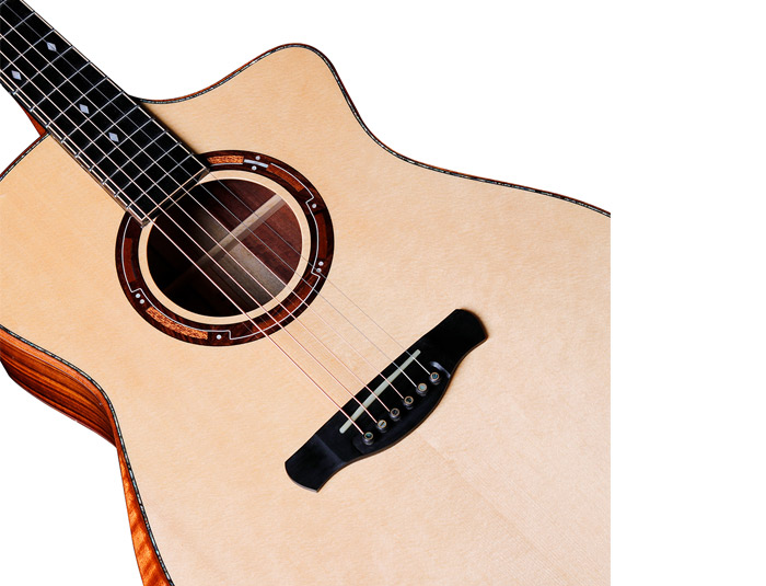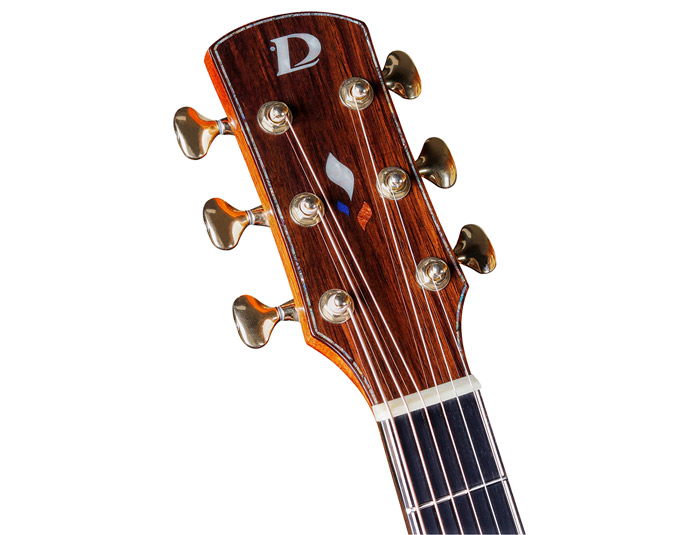 珍贵珍贵稀有木材,桑托斯拥有着更丰富的泛音,更为晰的中高反馈;纹理清晰,美观有光泽,音色与颜值的结合。乌木指板,硬度高,稳定顺滑,严选陈年乌木,品丝倒角细腻精湛,名贵珍贝镶嵌。