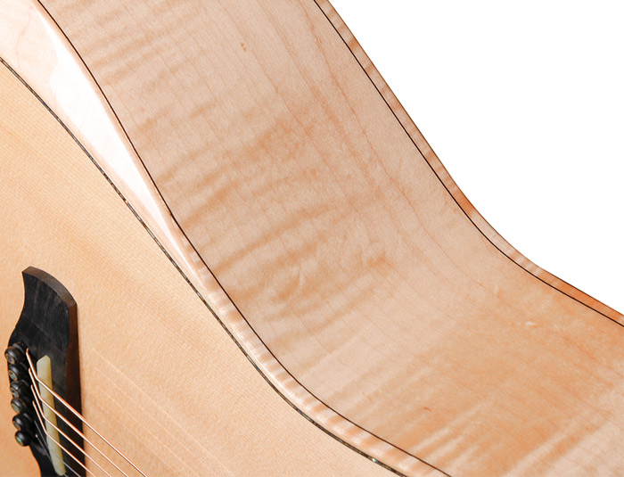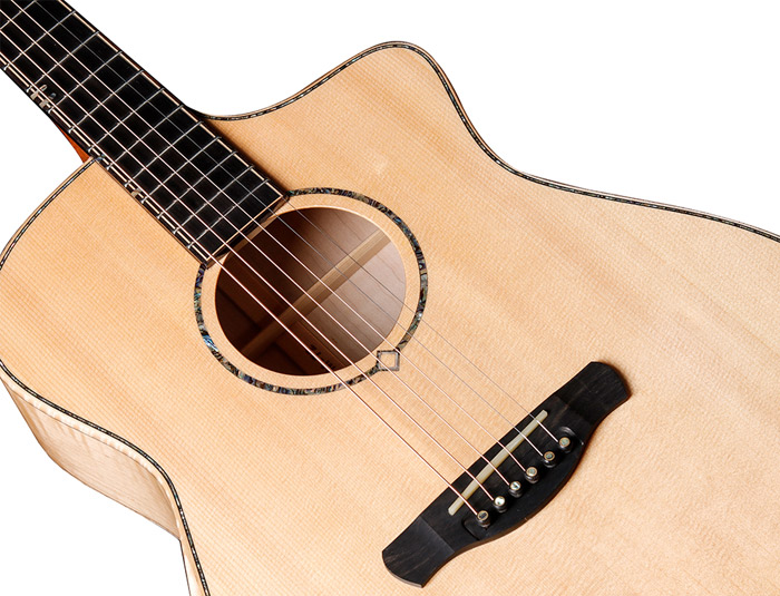 好声音从木材开始,从严谨取材的选择到精致搭配,每一把吉他所使用的板材都精挑细选,采用纹理清晰,硬度高且重量较轻的A级优质板材。精湛的制琴工艺,忠于传统手工艺。严谨的品质要求,琴体都统一为亮光的漆面,漆面通透,油漆细节足以体现对品质的苛刻外观漂亮。