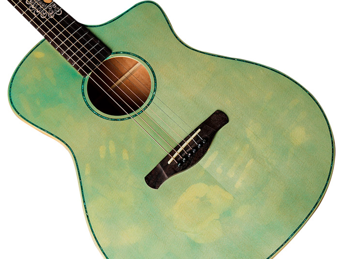 首家独特研发环保新工艺、科技创新,新品研发亮点:在吉他外观漆面上将会突破传统,采用德国进口温感环保新材料融入吉他漆面工艺上,当手抚摸吉他面板上时,手的温度传递到面板上,在环保新材料的特性和变色原理下,从而使面板的颜色发生改变。也可以随着环境温度的变化而迅速改变颜色,让你一年四季在不同区域带给你不同的颜色视觉感受和惊喜体验。